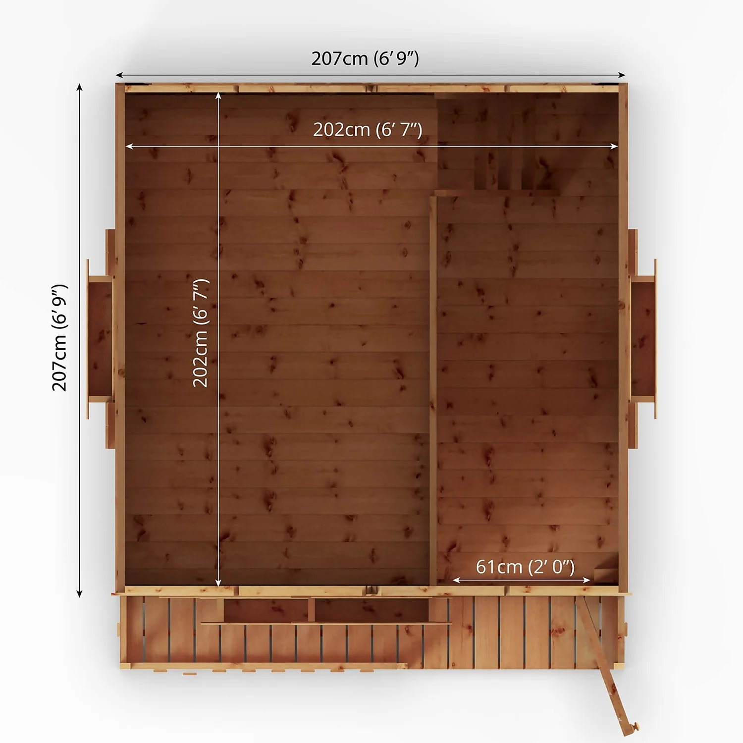 - Tongue & Groove Roof and Floor – Heavy duty interlocking boards create a premium, strong and robust finish