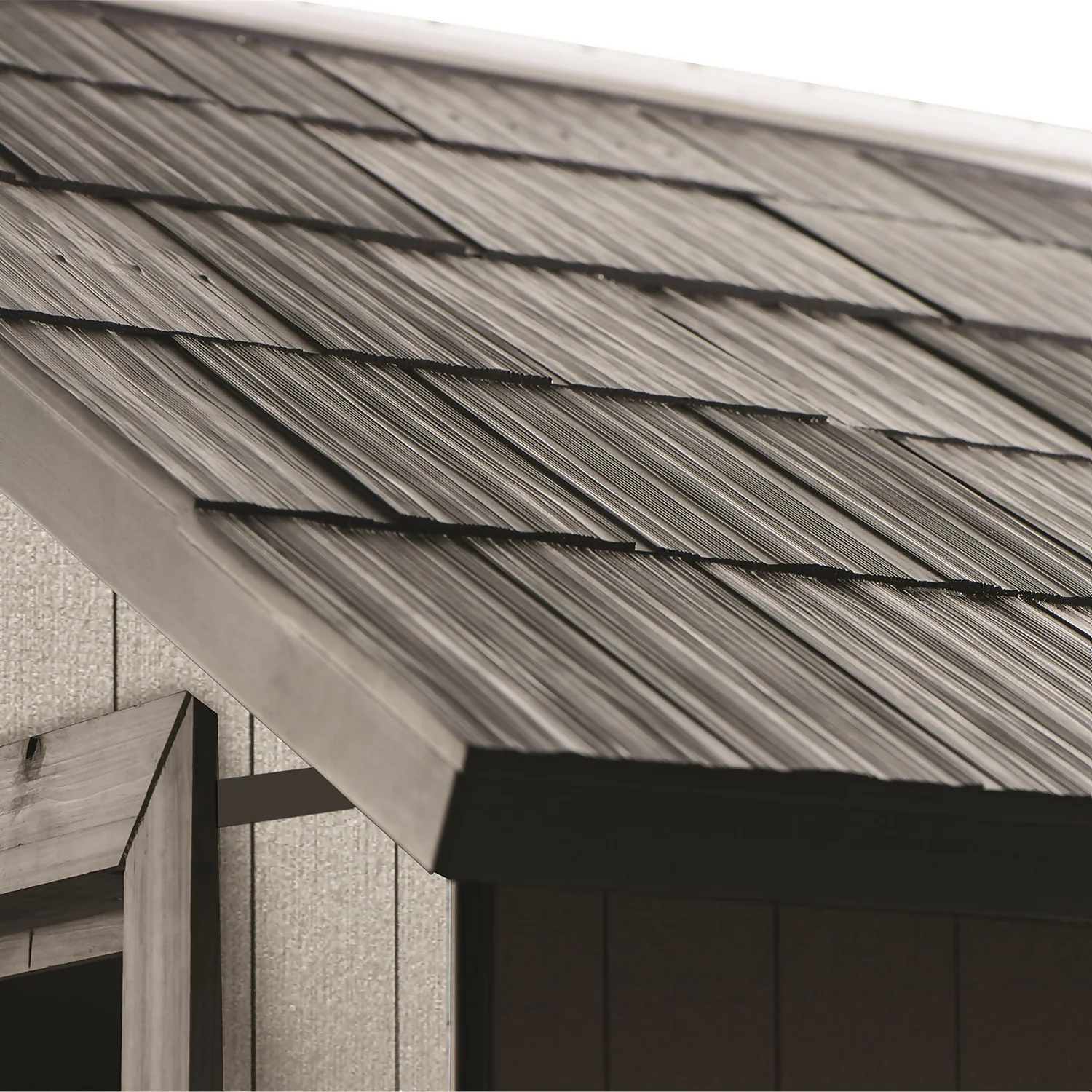 Thanks to its DUOTECH wood-texture walls, this shed is fully customisable – you can paint, drill and cut as you wish. Sturdy double doors make getting things in and out a breeze and the high ceiling lets you walk around inside with comfort.
