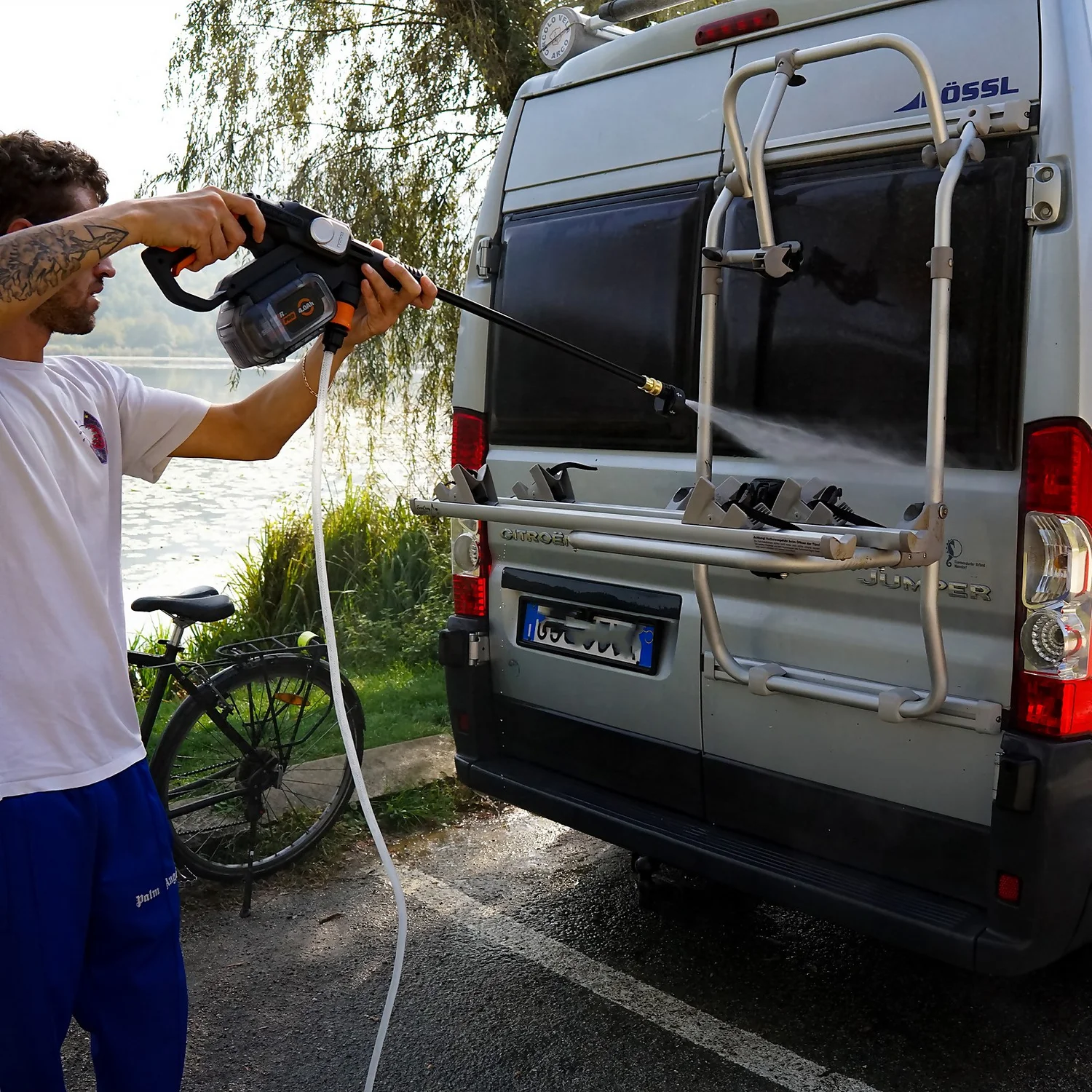 Unlike conventional pressure washers with a bulky body unit, mains connection and garden hose attached to a tap, the new Worx Nitro high-flow Hydroshot WG633E runs on batteries. It draws water from any source, including bottles, buckets, pools, lakes, etc. It’s ideal for cleaning around the house and patio. Equipped with Worx-built Brushless Motor 2.0, this high-pressure washer delivers excellent performance on powerful cleaning with 220L/h flow rate and 56bar max pressure (38 bar rated pressure). Designed compact and portable, at only 1.5 kg, you can take it anywhere you need. And the 5-In-1 nozzle allows switching from 0°, 15°, 25°, 40° to shower, satisfying all your needs. You can use it to wash cars, windows, bicycles, boats, outdoor equipment, garages, etc. Especially recommended for removing stubborn dirt. With the IPX5 waterproof battery case, it’s safer to use for more applications. Worx NITRO’s line of high-performance tools gives you the proven power to go above and beyond, outperforming standard battery-operated tools.